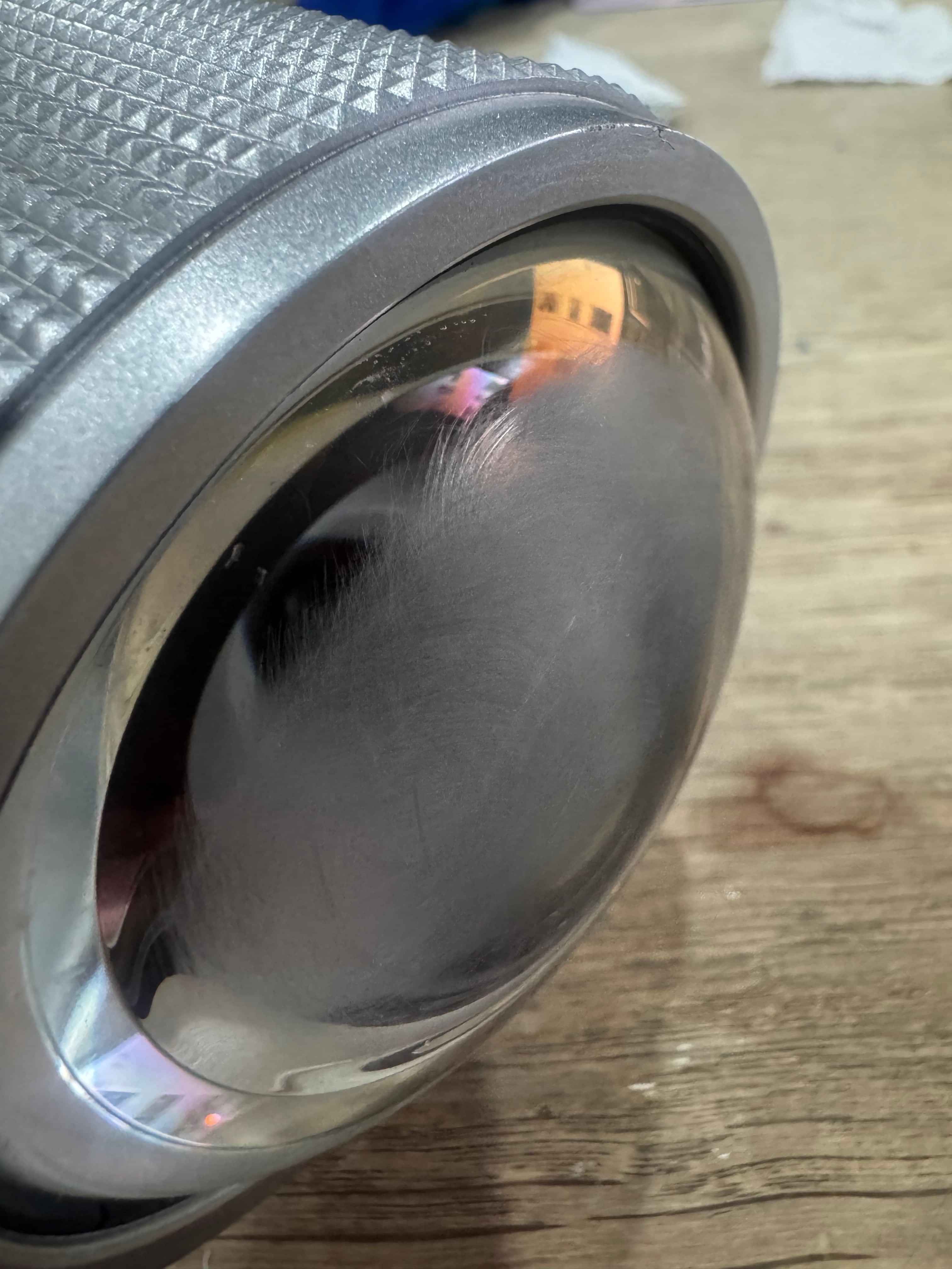 Here at Ninatec we can help you with Lens scratches. In this image we have used a Nail and scratched this beautiful lens on purpose.